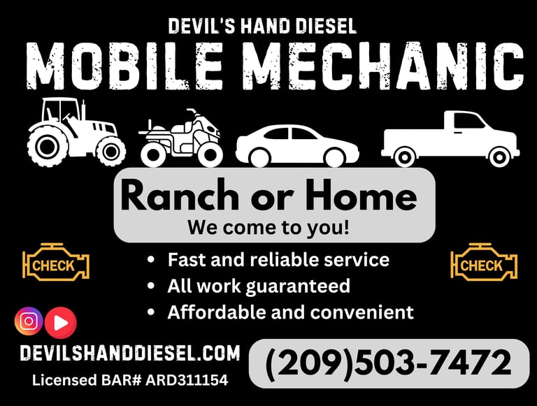 We repair cars, trucks, tractors, watercraft, dirtbikes, ATV's, Generators and more at your location!